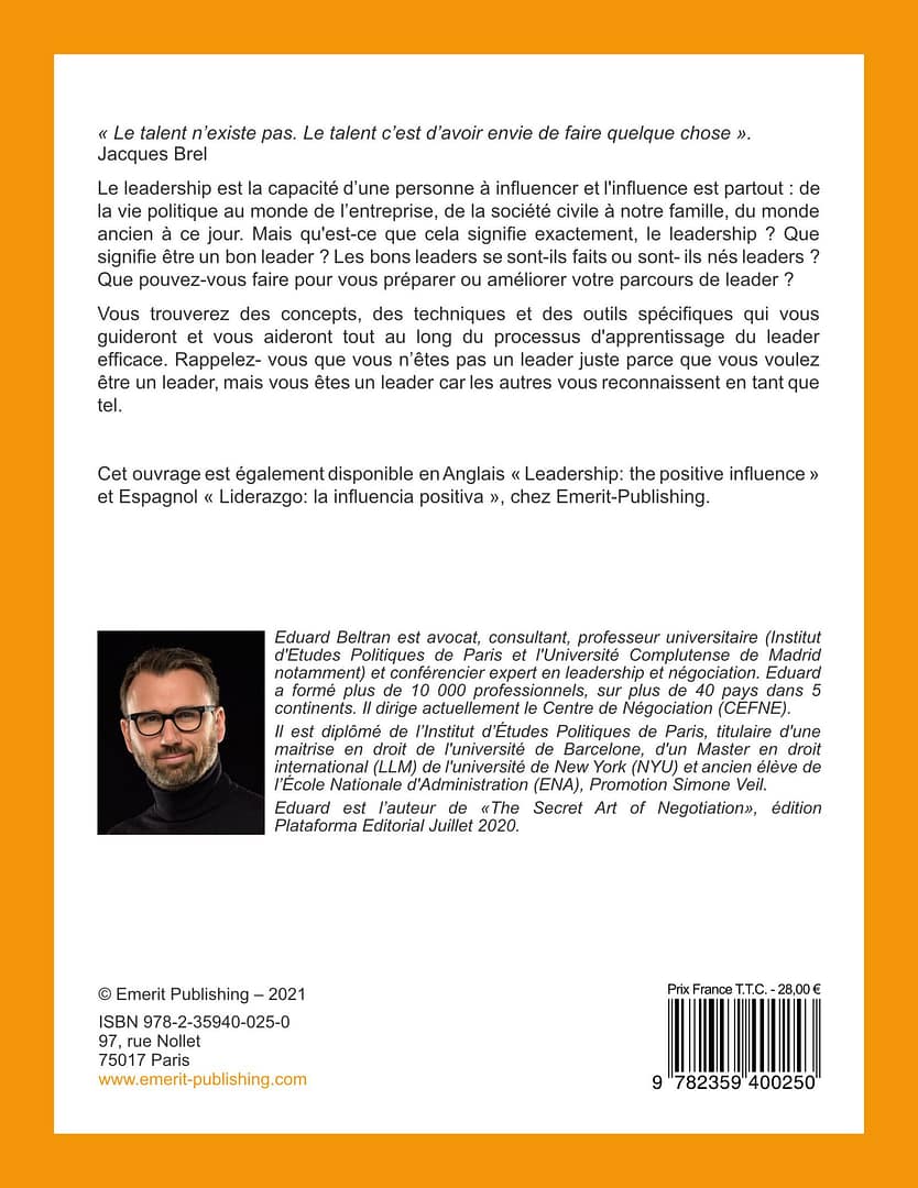 Eduard Beltran est avocat, consultant, professeur universitaire (Institut d’Etudes Politiques de Paris et l’Université Complutense de Madrid notamment) et conférencier expert en leadership et négociation.